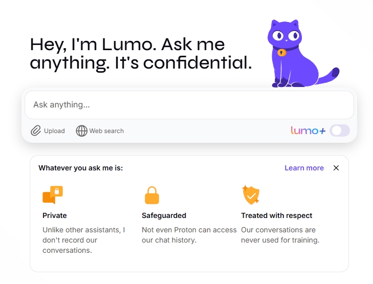 Lumo AI este un chatbot dezvoltat de Proton, compania elvețiană cunoscută mai ales pentru serviciul de e-mail securizat Proton Mail, dar și pentru alte soluții axate pe confidențialitate.